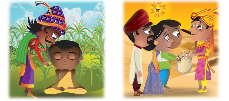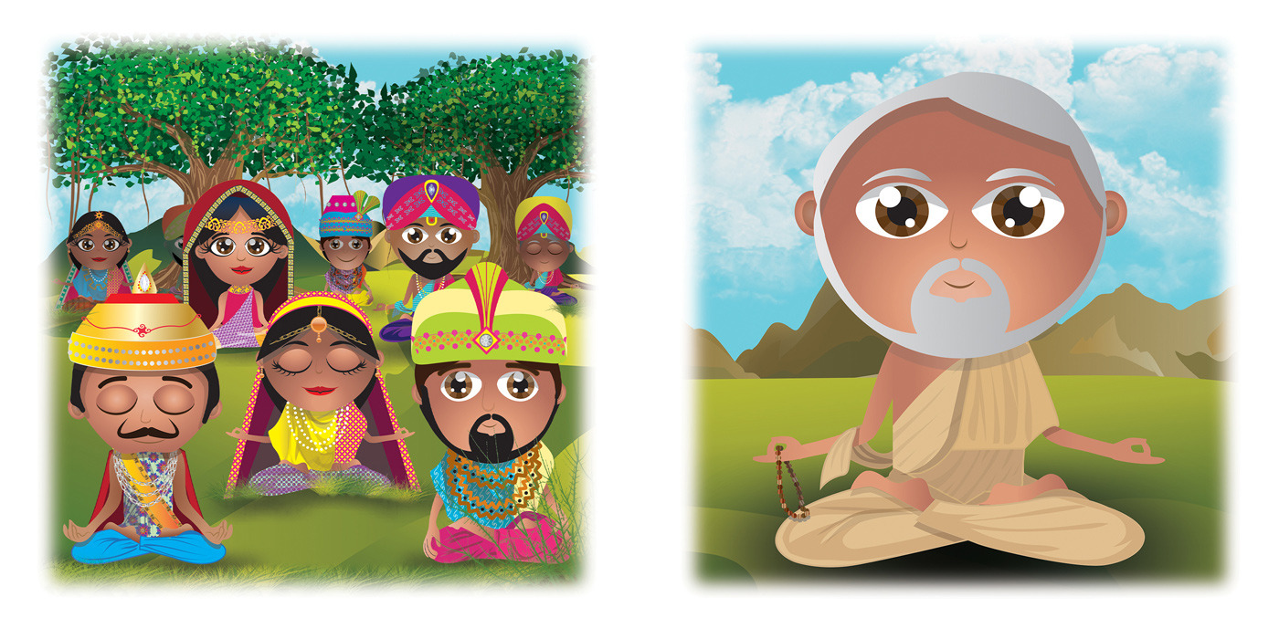 Using my personal vector art style, I infused the book with bright and striking colours, carefully considering Hindu cultural influences to create a visually rich and meaningful representation of Jainism. Every background, character, and composition was meticulously crafted to balance authenticity with an engaging storytelling approach.
