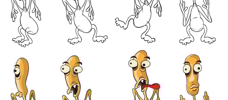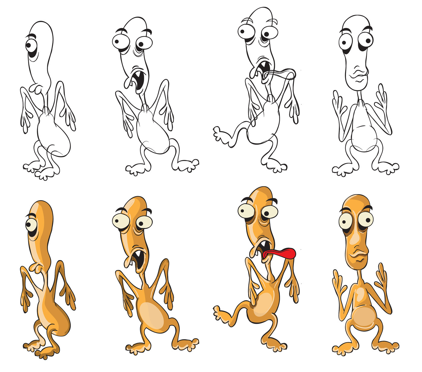 “Group of expressive orange critters with surprised faces in a playful cartoon style - fun character illustration for kids.”