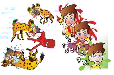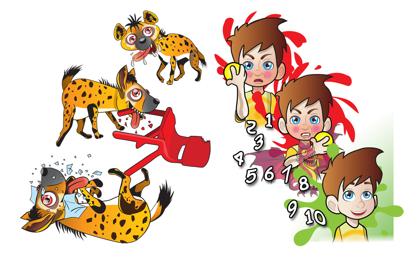 Using my personal vector art style, I infused bright colours and exaggerated expressions to enhance the book’s energetic and comedic tone, making it engaging for kids. One of the biggest challenges was ensuring the dragons and hyenas were both intimidating yet playful, striking the perfect balance between fear and fun. With close collaboration and detailed feedback from the author, I refined every visual element to ensure the storytelling aligned seamlessly with the book’s message.
