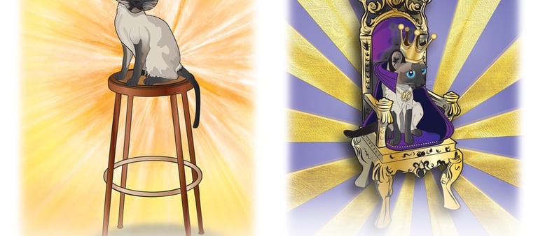 Using my personal vector art style, I designed bold and vibrant illustrations that enrich the playful narrative. A key challenge in this project was ensuring Bimbo’s personality shined through - capturing his regal fantasies while maintaining the story’s lighthearted, endearing tone.